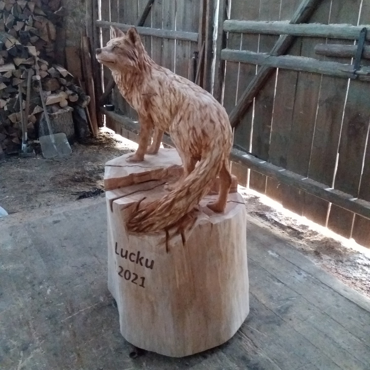 Řemeslník věnuje maximální pozornost výrazným rysům hlavy, bystrému pohledu i jemně modelovanému čenichu. Plasticky propracovaná struktura srsti, ladné linie těla a přirozeně tvarovaný ocas dodávají soše hloubku a autentický trojrozměrný efekt. Každý detail je vytvářen ručně, což zaručuje jedinečnost každého kusu – liší se kresbou dřeva, odstíny i drobnými detaily, které podtrhují originalitu výrobku.