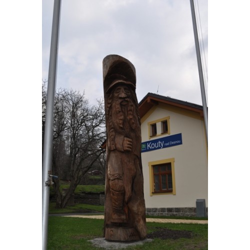 Všechny tyto vlastnosti, které naši pomaleji, ale jistější, jednající předkové měli. Dřevěné socha symbolizuje mystického starešinu putujícího horami a lesy. Naráží na náhodných kolemjdoucích a poskytuje jim rady výměnou za pomoc. Socha se perfektně hodí doprostřed lesíka či před řádově zasazené stromy.