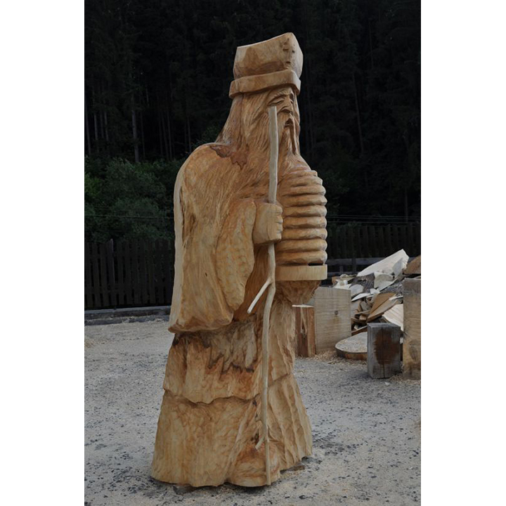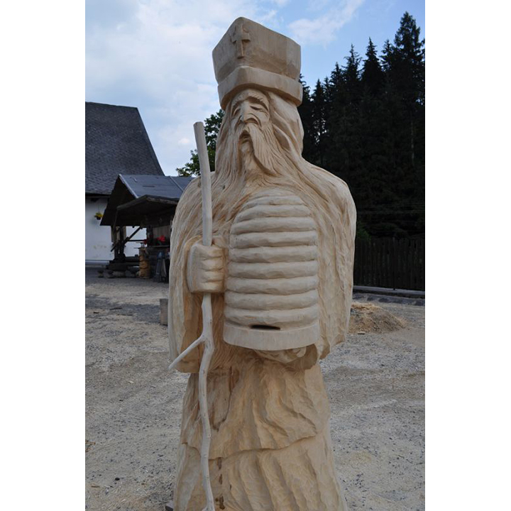 Představujeme vám tuto jedinečnou dřevěnou sochu, která zobrazuje svatého Ambrože. Její výška dosahuje 200 cm a je vyřezaná z lipového dřeva. Tato dřevěná socha je vhodným dárkem pro všechny včelaře. Důvod je přece jasný. Svatý Ambrož je patronem včelařů a proto je zobrazen se včelím úlem v ruce. Z této krásné dřevěné sochy vyzařuje klid, ale i určitá jistota a radost. Tato dřevěná socha je rozměrově větší, takže ji doporučujeme umístit do exteriéru, například i v blízkosti včelích úlů.