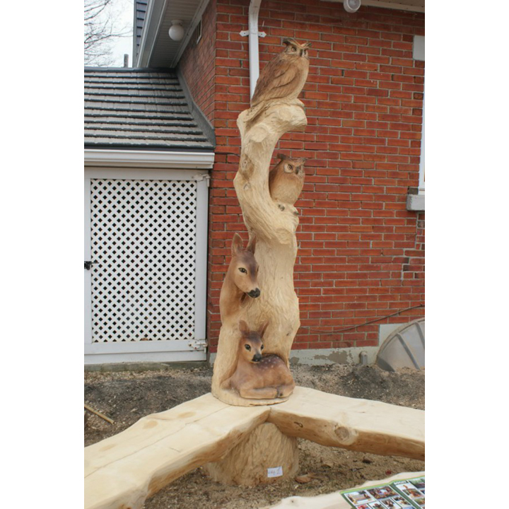 Málo se o tom ví, ale obyvatelé lesa si jednou za čas musí dát poradu. Takový výjev se traduje jen ve vtipech. Nicméně autor této vyřezávané sochy se jednoho takového setkání přátel lesa a lesních tvorů zúčastnil.