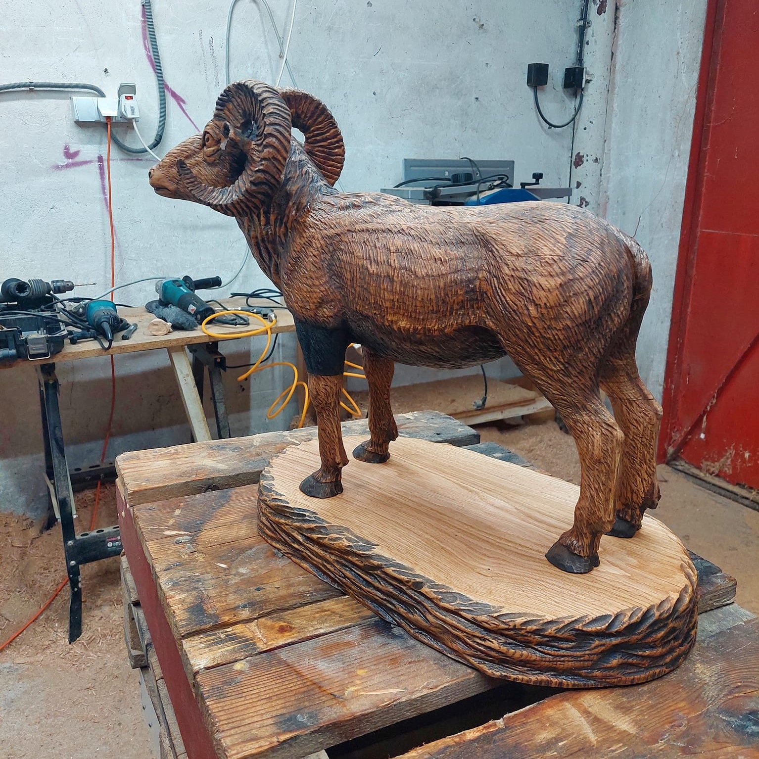 Tato působivá dřevěná socha berana je výsledkem precizní ruční řezbářské práce, která dokonale zachycuje sílu, hrdost a charakter tohoto impozantního zvířete. Každý kus je pečlivě vyřezáván z kvalitního masivního dřeva s důrazem na realistické proporce a propracované detaily.
