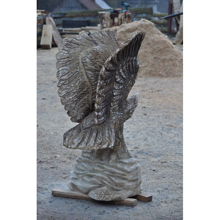 Ornitologie je vaší vášní? Pokud ano, tak vám představujeme tuto dřevěnou sochu dravce. Výška této dřevěné sochy představuje 120 cm a je vyřezaná z topolového dřeva. Zobrazuje orla sedícího na skále. Může se tak stát ideální okrasou ve všech exteriérových prostranstvích. Své místo jistě najde například v zahradách, případně v loveckých restauracích. Můžete ji samozřejmě umístit kdekoliv, kde uznáte za vhodné.