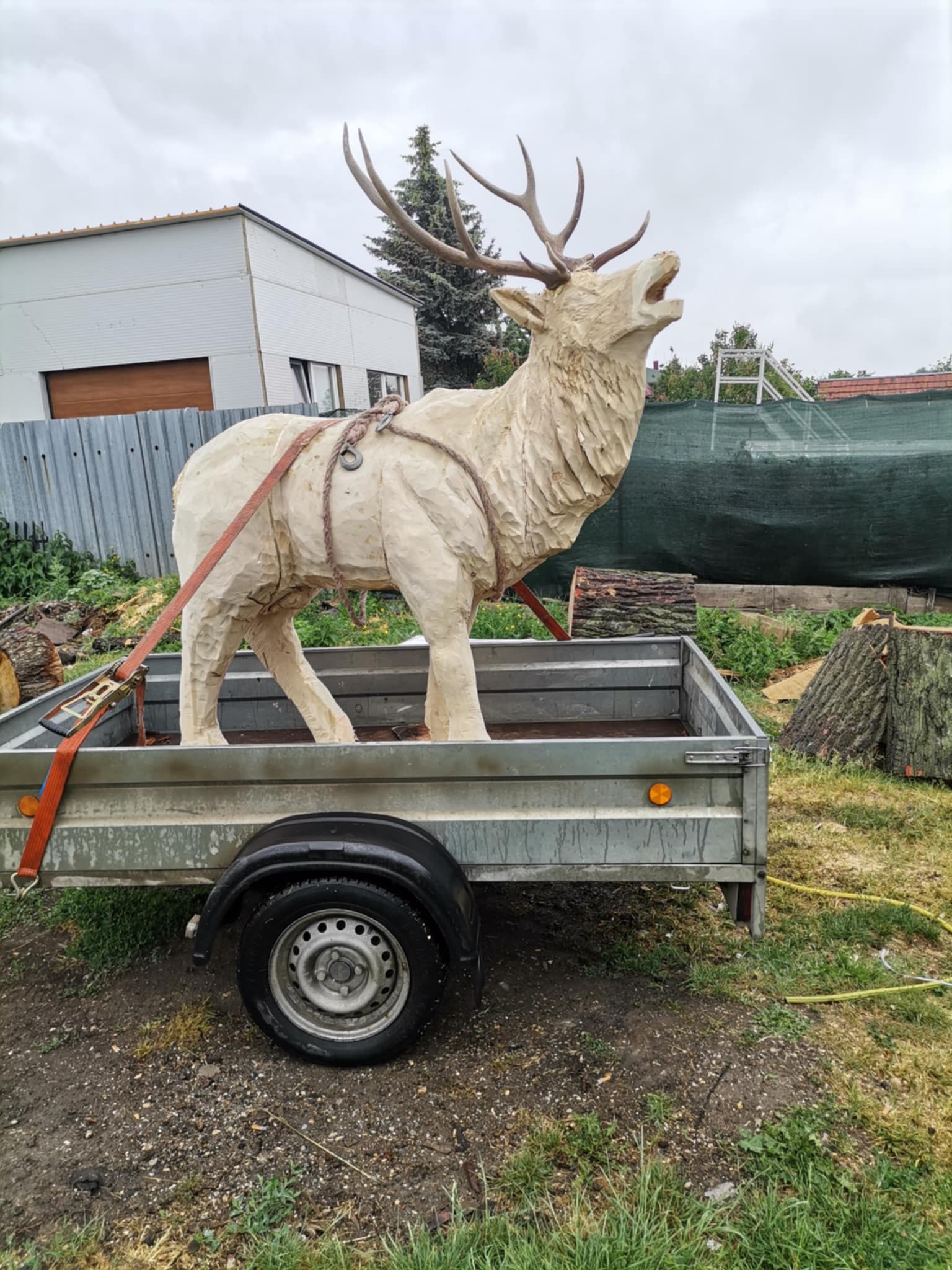 Zahradní dřevěná socha – Dřevěný jelen a srna
