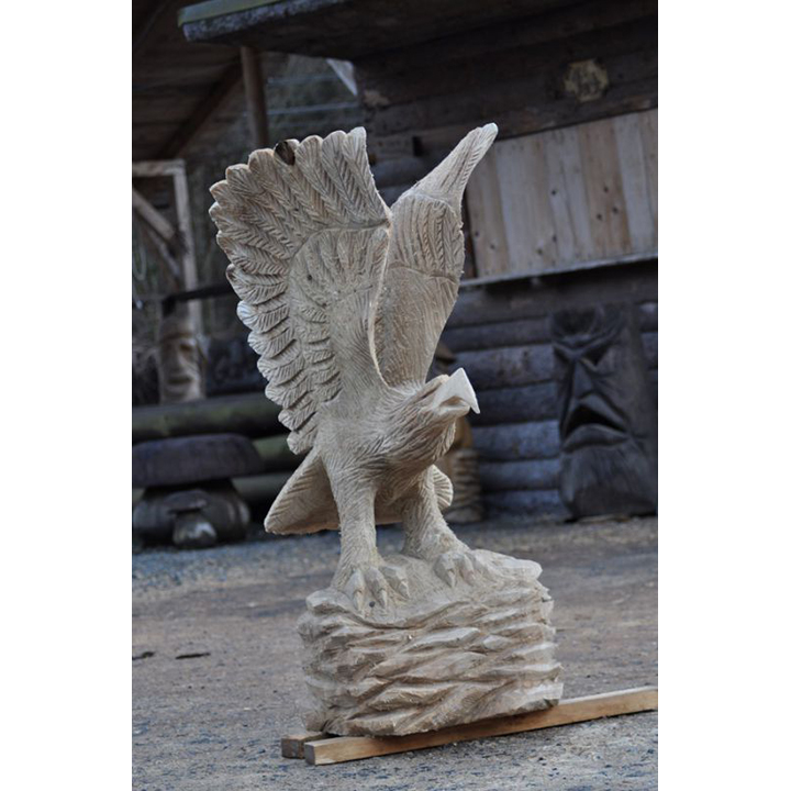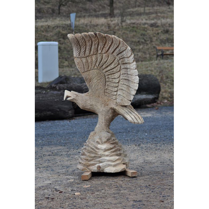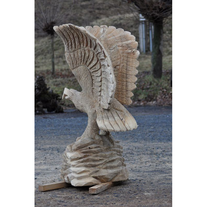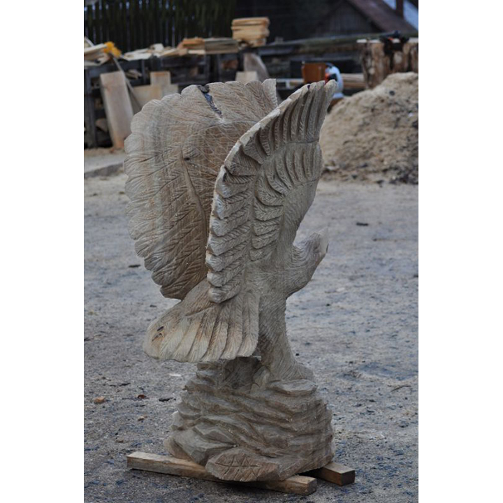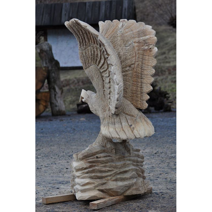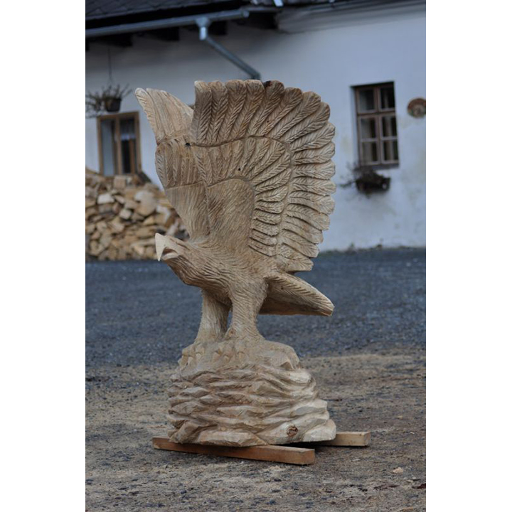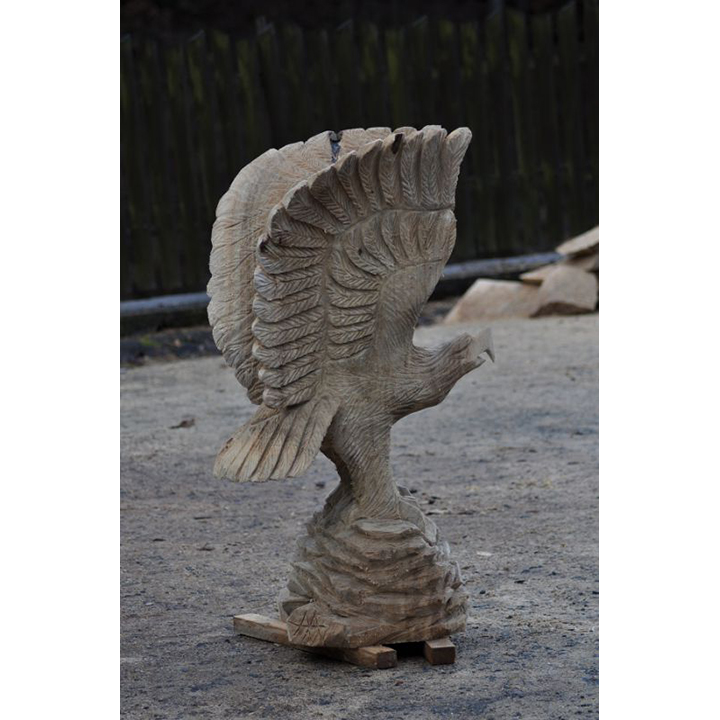 Ne nadarmo se říká, že orel je králem ptactva! Jen se dobře podívejte na tuto dřevěnou sochu zobrazující orla na skále. Výška této dřevěné sochy dosahuje 120 cm a je vyřezaná z topolového dřeva. Ať už ji umístíte kamkoli, může se stát ideálním symbolem odvahy, síly, ale i statečnosti. Přesně těmito vlastnostmi disponuje každý orel. Odteď může být váš!