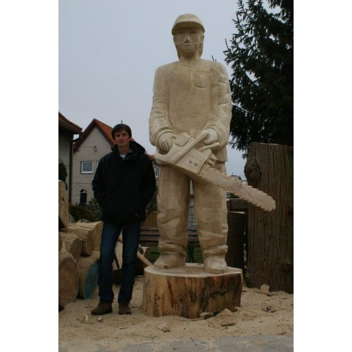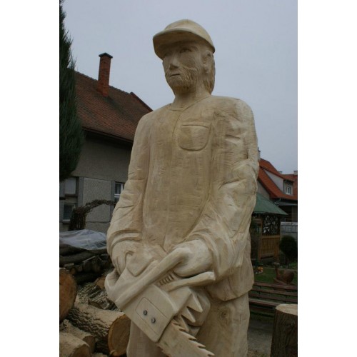 Mistr řezbář se rozhodl, že nám pilčíka-tradičního řemeslníka alespoň symbolicky připomene. Vyrobil tak tuto krásnou dřevěnou zahradní sochu v podobě pilaře.