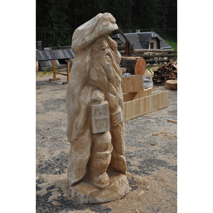 Zahradní dřevěná socha – Dřevěný pradědeček s lucernou