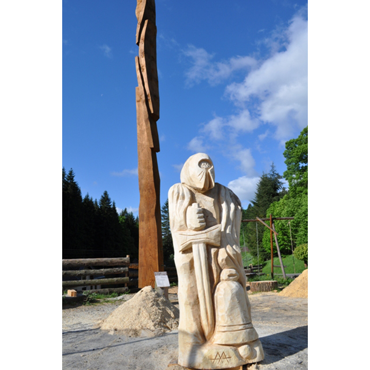 Zahradní dřevěná socha – dřevěný rytíř