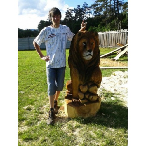 Lev je také nádherný i vsedě. Tehdy vypadá skutečně nevinně. Dřevěná socha zobrazující klidného, sedícího lva zaujme každého z nás.