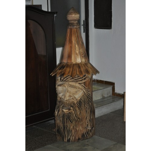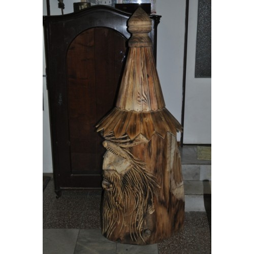 Včelí úl ukrytý v dřevěné soše, zobrazující hlavu starce s dřevěným kloboukem ve tvaru střechy. Samozřejmě nemusí sloužit jen jako úl pro včely. Je však ideální do zahrady či jiného exteriéru, k trávě ale i štěrkové cestičce či kamennému podkladu. Během slunečných dnů může vytvářet příjemný stín a během deště můžete sledovat jak klidně stékají pramínky vody po jeho klobouku. Vousatý mudrc také ve svém pohledu skrývá tajemství a je jen na vás abyste ho odhalili.