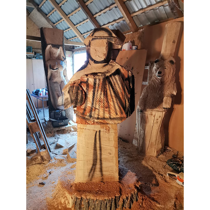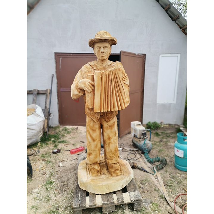 Tato originální dřevěná socha harmonikáře je výsledkem precizní ruční řezbářské práce, která zachycuje atmosféru hudby, radosti a tradice. Každý kus je pečlivě vyřezáván s důrazem na výraz postavy, realistické proporce i detailní zpracování samotné harmoniky.