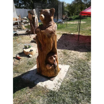 Tato působivá dřevěná socha hlavy medvěda je mistrovským výsledkem precizní ruční řezbářské práce. Každý detail je pečlivě vypracován tak, aby vynikla síla, majestátnost a přirozený výraz tohoto impozantního zvířete. Řezbář věnuje mimořádnou pozornost realistickému ztvárnění srsti, výrazným očím, tvaru čenichu i mohutným liniím hlavy.