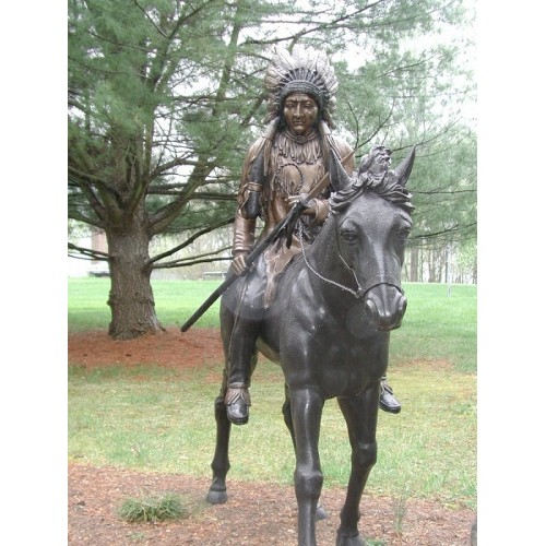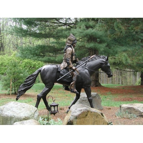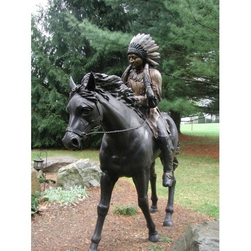 Záhradní bronzová socha – Indiánsky náčelník na koni