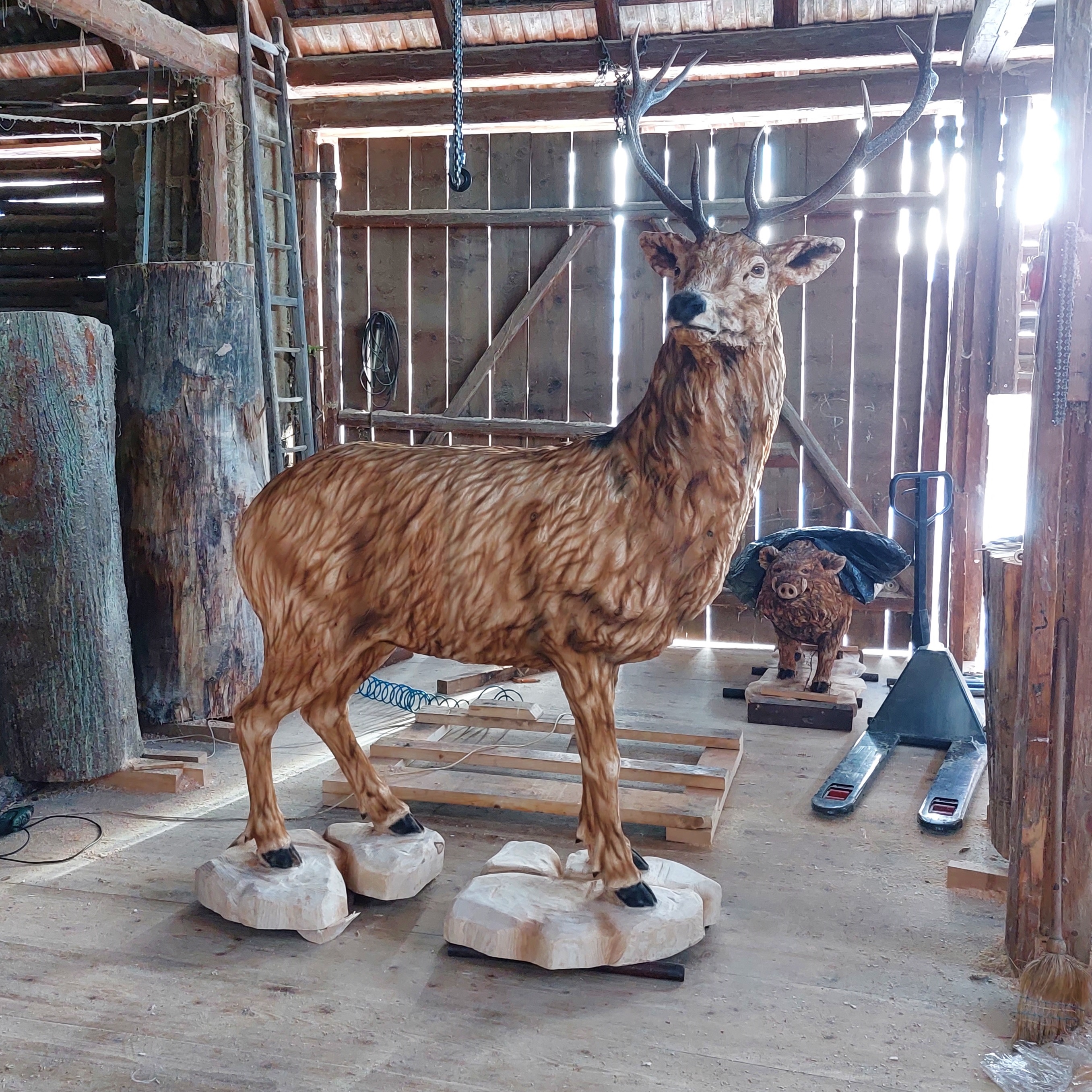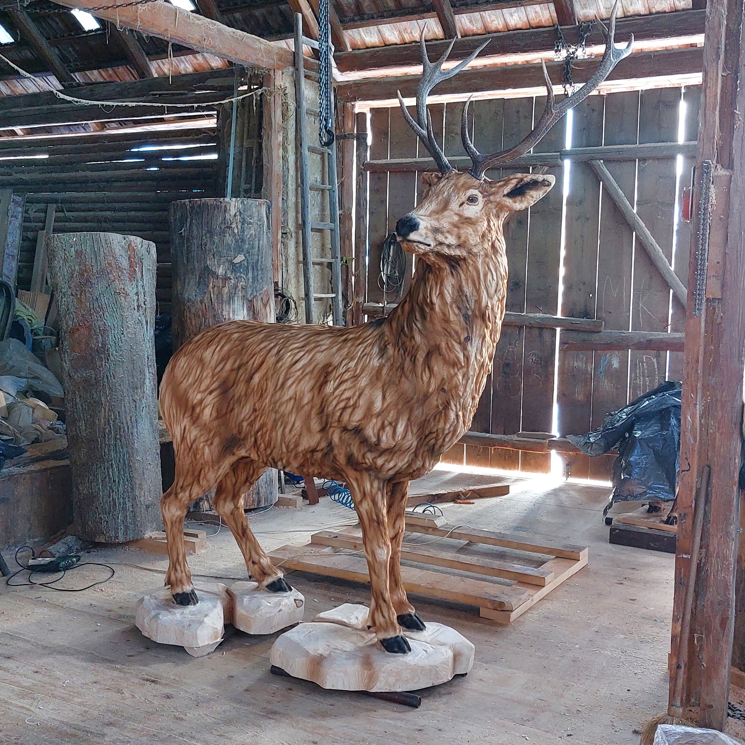 Jelen – dřevěná socha