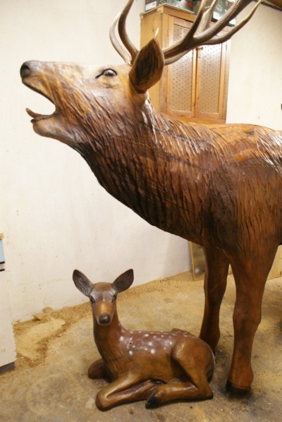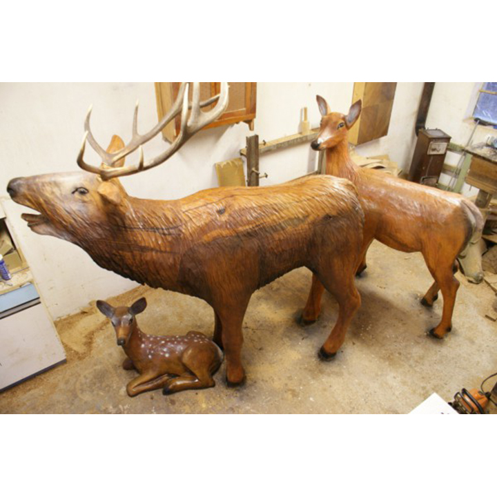 Zahradní drěvěné sochy – Jelení drěvěná rodina