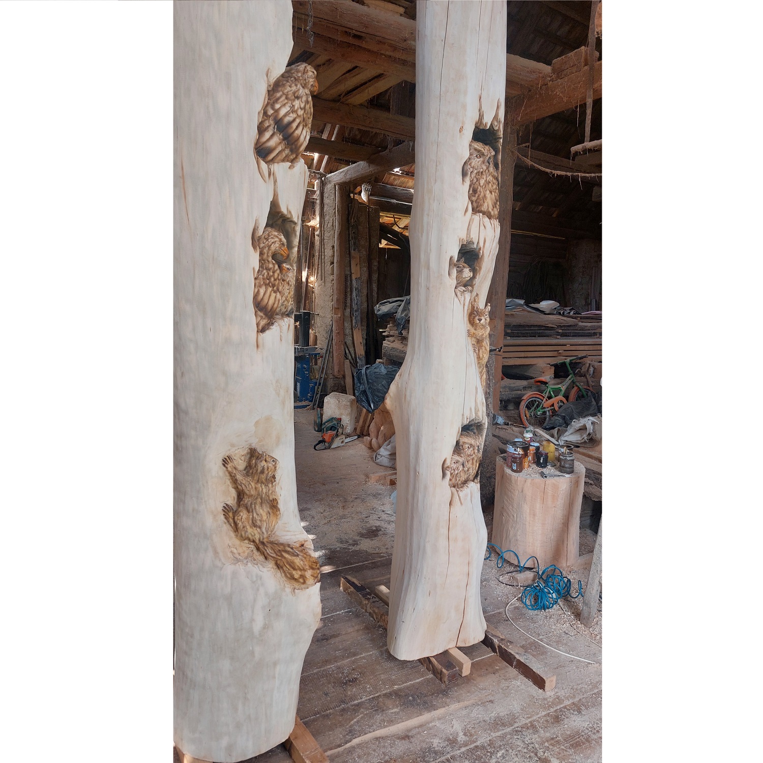 Ručně vyřezávaná socha – Lesní zvířata na sloupu