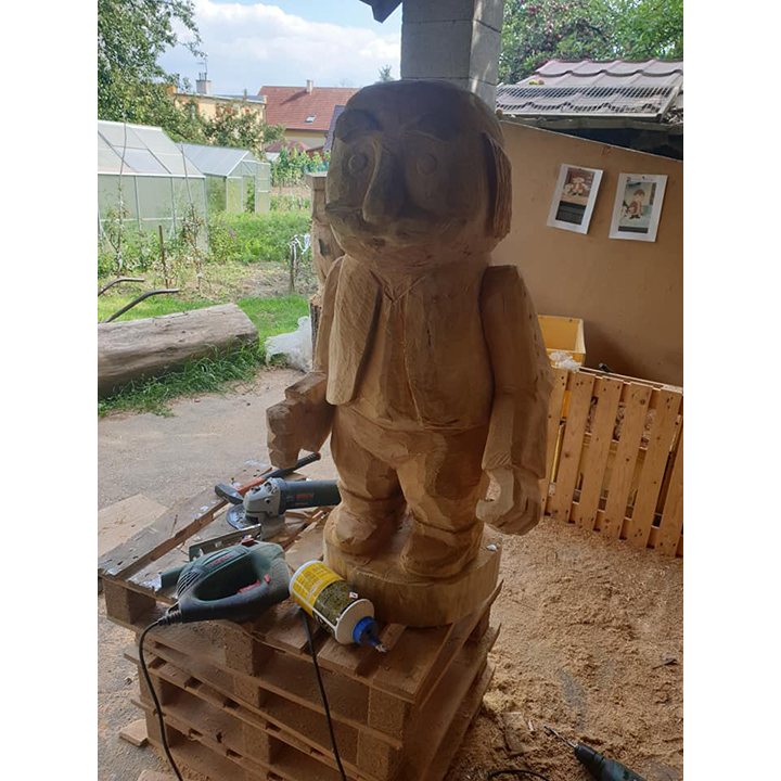 Řemeslník věnuje maximální pozornost tvaru hlavy, rukou i těla, stejně jako jemnému zpracování obličejových rysů a dalších prvků. Díky plastickému provedení působí socha hravě, ale zároveň elegantně a stylově. Každý výrobek je originál s unikátní kresbou dřeva a přirozenými odstíny, které podtrhují jeho jedinečnost.