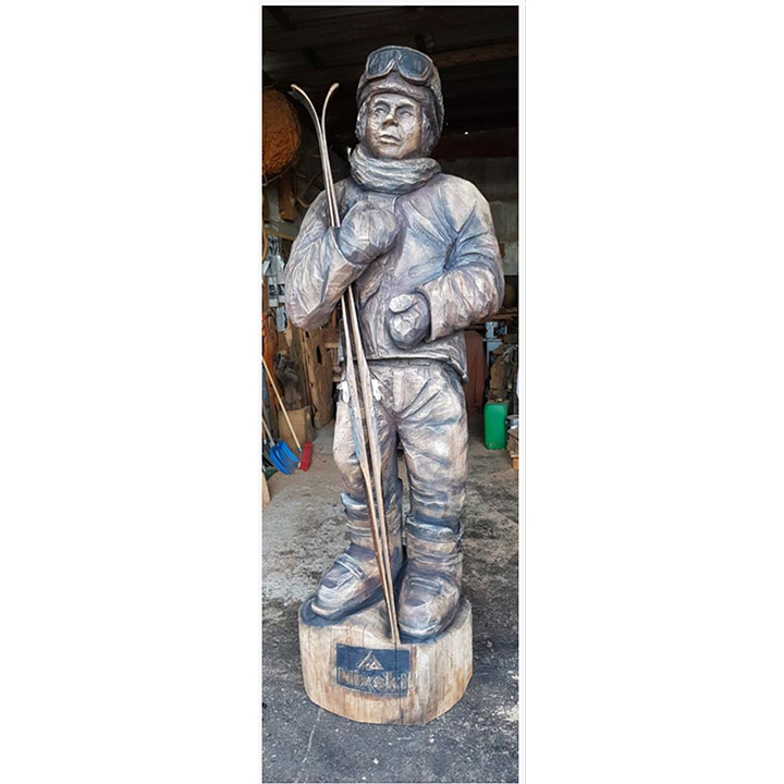 Lyžař – dřevěná socha