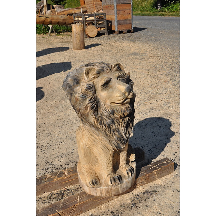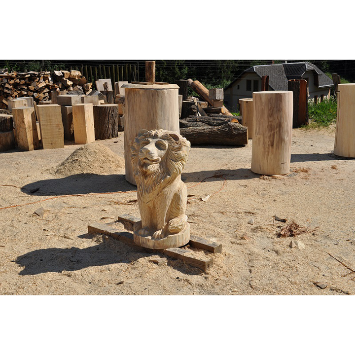 Teprve nedávno jsme si mohli v kinech vychutnat další zpracování legendárního příběhu Lví král. Máte rádi tuto pohádku? Můžete, ale také nemusíte. Dřevěná socha zobrazující majestátního lva je pro všechny. Když se podíváte na živého lva, terčem vaší pozornosti se určitě stane jeho bujná hříva. Platí to iv případě této dřevěné sochy. Podívejte se na tohoto majestátního dřevěného lva. Bujná hříva lva ještě více vynikne, když lev sedí, což je případ tento dřevěné sochy. Všimněte si ještě detailně propracovanou tvář lva. Tato krásná dřevěná socha se přímo ptá na váš dvoru či zahradu. Tato dřevěná socha z lipového dřeva má výšku 100 cm.