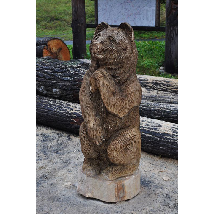 Setkat medvěda v přírodě, to věru není žádná výhra. Týká se to zejména samic, které mají u sebe mláďata. Tento pozorující medvěd však žádné mláďata u sebe nemá. Nebojte se, vůbec na vás nezaútočí, vlastně ani nemá jak. Tento pozorující medvěd je totiž dřevěná socha. Výška této dřevěné sochy dosahuje 150 cm a je vyřezaná z topolového dřeva. Nádherný pozorující medvěd se může stát ozdobou vaší zahrady, stačí si ho už jen koupit.
