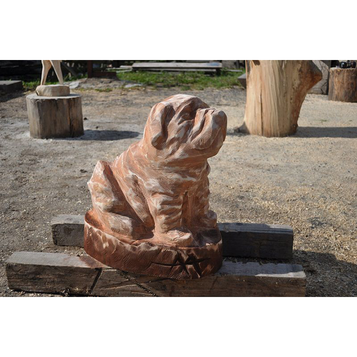 Říká se, že pes je nejlepším přítelem člověka. Zdá se, že v poslední době narůstá počet lidí, kteří mají psa. Myslíte si, že je to náhoda? Možná ano, možná ne. O tomto tématu by se dalo velmi dlouho diskutovat. Mnoho lidí by také chtělo psa, ale nemohou ho mít, protože by neměly dostatek času se mu věnovat. Nevadí! Můžete si dopřát tuto dřevěnou sochu zobrazující sedícího buldoka. Výška této dřevěné sochy je 40 cm a je vyřezaná z lipového dřeva. Díky praktické výšce můžete tuto dřevěnou sochu umístit prakticky kdekoliv.