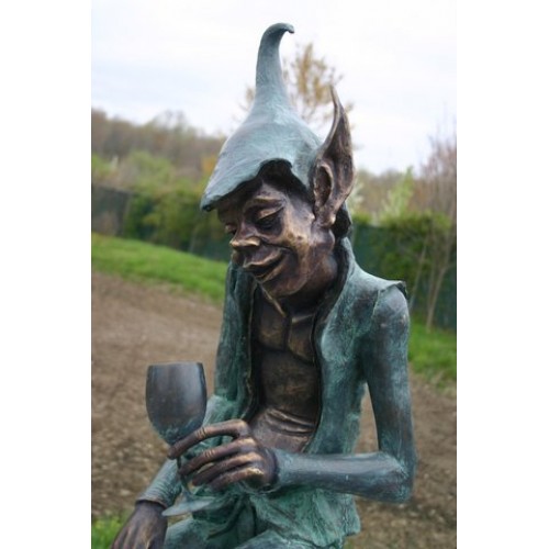 Skřítci jsou stejně jako například mořské panny považovány za mýtické bytosti . Také se objevují v pohádkách . Jsou nižšího vzrůstu , přesto zaujaly lidí po celém světě . Zaujaly i vás? Milujete trpaslíky až do takové míry, že byste je chtěli mít na očích každý den ? Věděli byste jim najít prostor , ať už ve vašem interiéru či exteriéru ? Pokud jste na výše uvedené otázky odpověděli ” ano ” , pak zkuste pouvažovat nad koupí této nádherné dřevěné sochy zobrazující skřítka s vínem . No a co , vždyť i skřítci jsou přece jen také jen lidé . Tedy vymyšlení lidé, kteří si také rádi dopřejí sklenku dobrého vínka . Na to myslel i umělec při tvorbě této bronzové sochy .