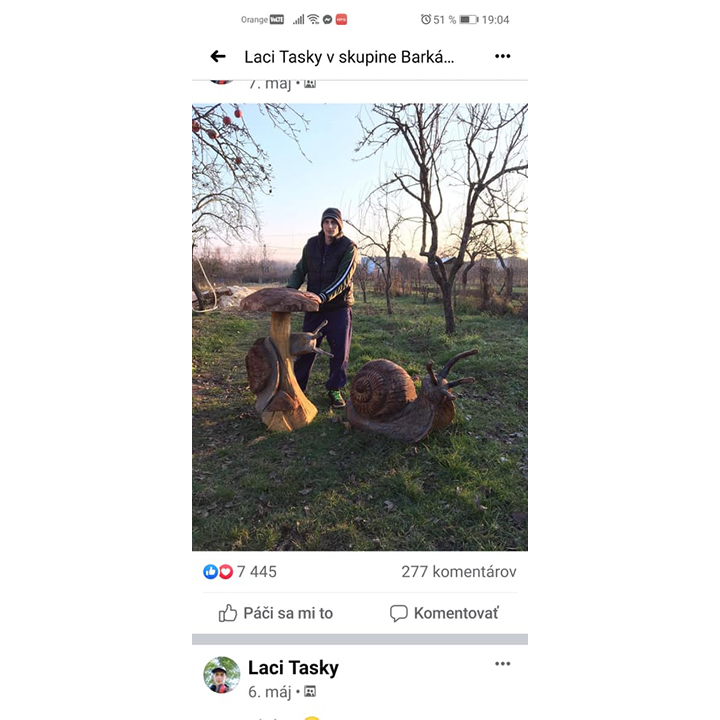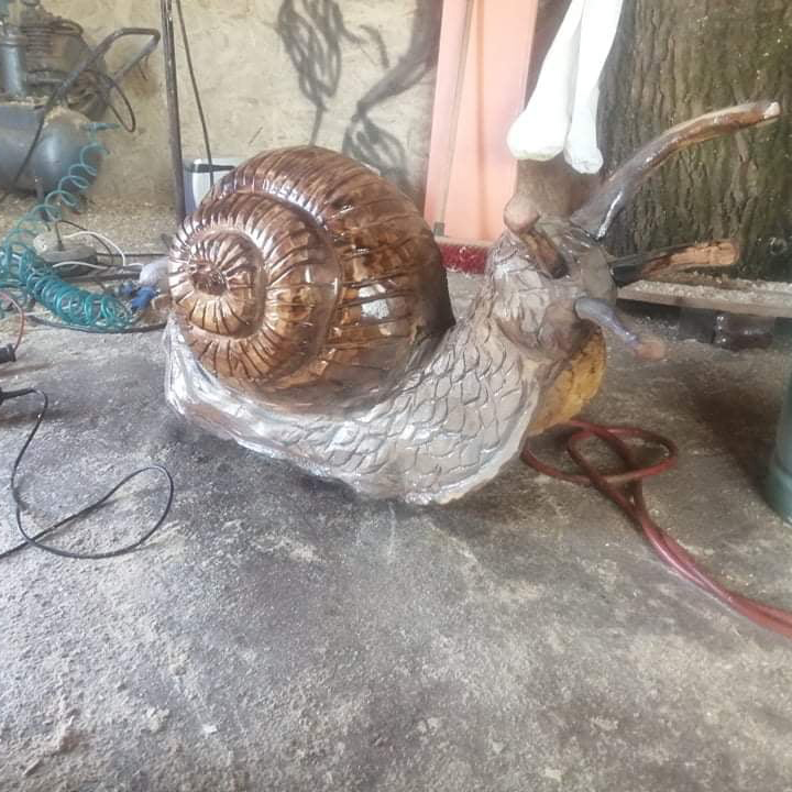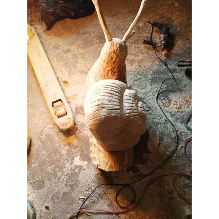 Socha je propracována do nejmenších detailů – plasticky tvarovaná ulita, jemně vyřezávané tělo i realistické proporce dodávají figurce živý a zároveň hravý charakter. Hloubka řezby zvýrazňuje jednotlivé linie a vytváří zajímavý vizuální efekt. Přirozená struktura dřeva podtrhuje autentický vzhled a dodává výrobku teplý, přírodní nádech. Povrch je pečlivě opracovaný a ošetřený pro dlouhou životnost a odolnost.