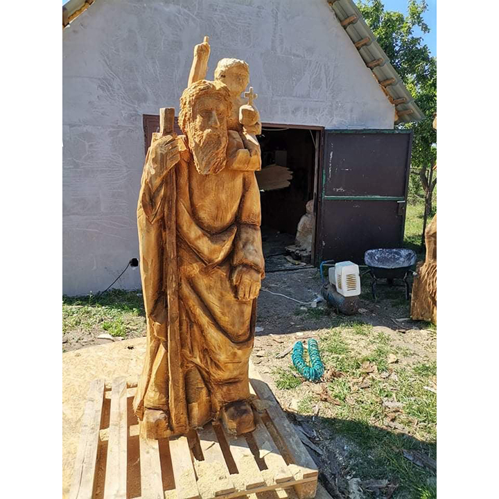 Tato výjimečná ručně vyřezávaná dřevěná socha svatý Kryštof představuje hluboký duchovní symbol ochrany, síly a oddanosti. Každý kus vzniká tradiční ruční řezbářskou prací z masivního dřeva a je originálním uměleckým dílem, které v sobě nese poctivé řemeslo, cit pro detail a úctu k náboženské tradici.