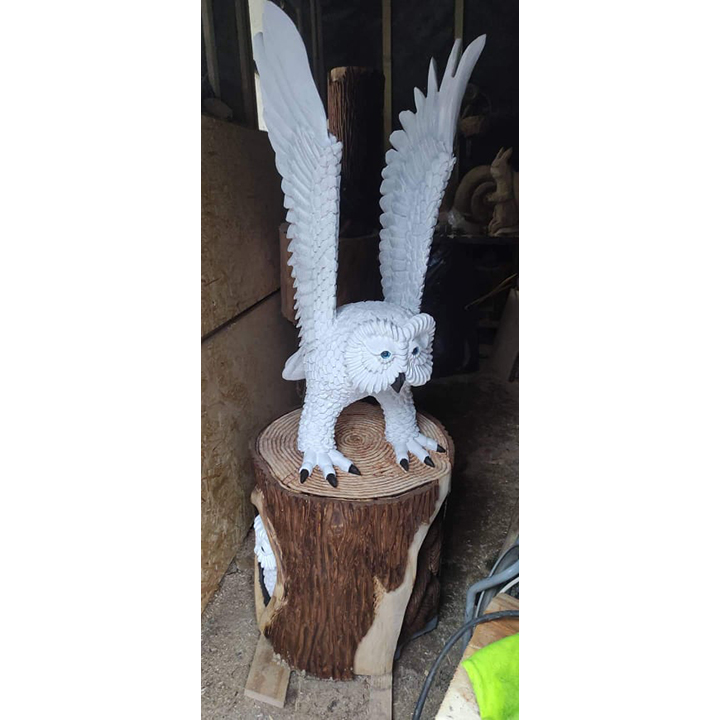 Sova na lovu je ideální jako dominantní dekorace do interiéru i exteriéru – vynikne v zahradě, u chaty, ve srubu, v loveckém salonku, tematické restauraci nebo jako reprezentativní prvek v soukromém prostoru. Je také výjimečným dárkem pro milovníky přírody, dravců a tradičního řemesla.
