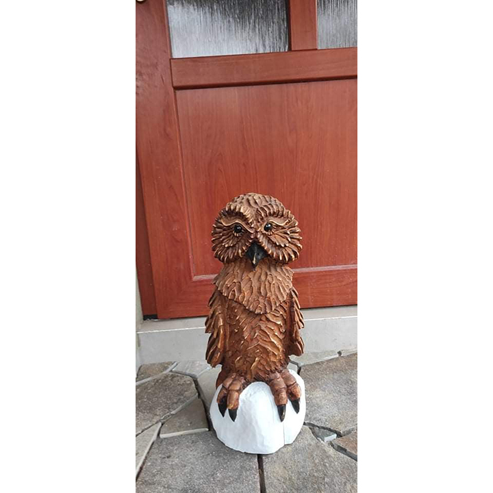 Sovička je ztvárněna s mimořádnou precizností – výrazné oči, jemně propracované peří, tvar křídel i přirozený postoj dodávají celé soše živý a přívětivý výraz. Plastická řezba vytváří hloubku a zajímavý vizuální efekt, který vynikne při pohledu z různých úhlů. Přirozená struktura dřeva podtrhuje autentický vzhled a dodává výrobku hřejivý, přírodní nádech. Povrch je pečlivě opracovaný a ošetřený tak, aby si soška zachovala svou krásu i dlouhou životnost.