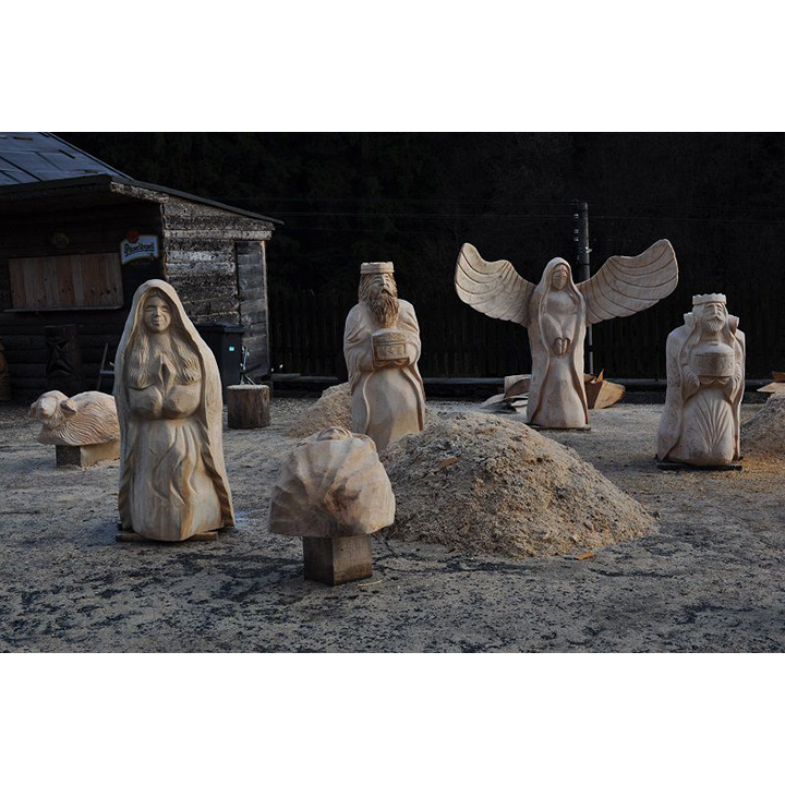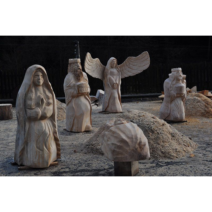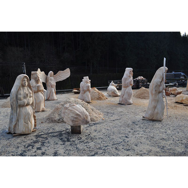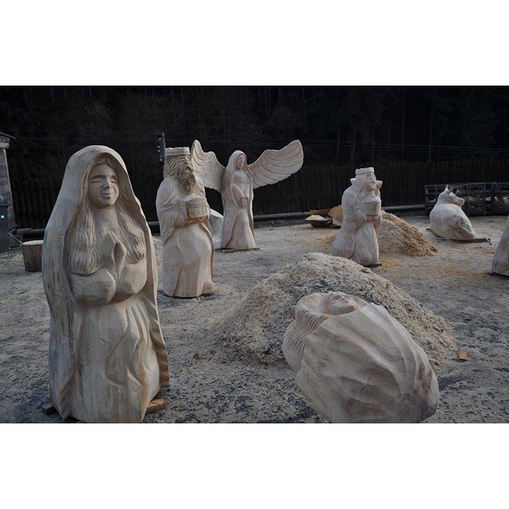 Máte rádi Vánoce? Přesně v tomto období bývá nejvděčnějším motivem námět svaté rodinky. Přesně to představují tyto dřevěné sochy vyříznuta v životní velikosti. Soubor soch samostatně stojících dřevěných soch obsahuje: