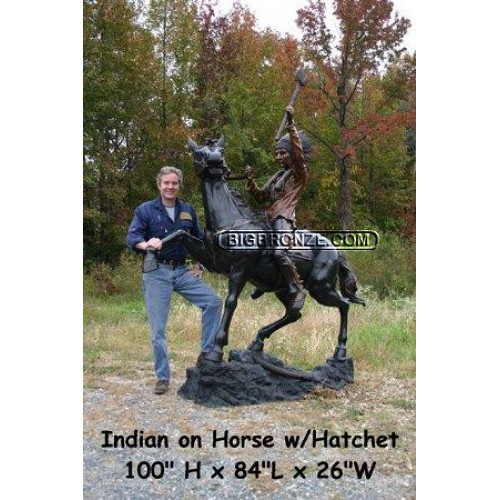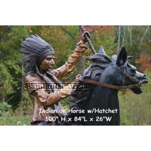 Záhradní bronzová socha – Tomahawk bojovník na koni