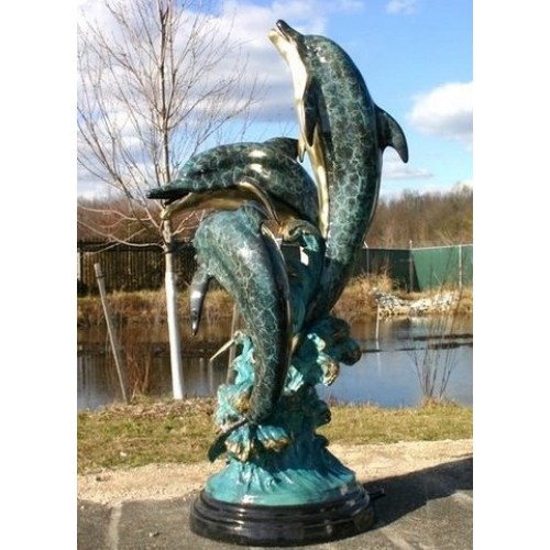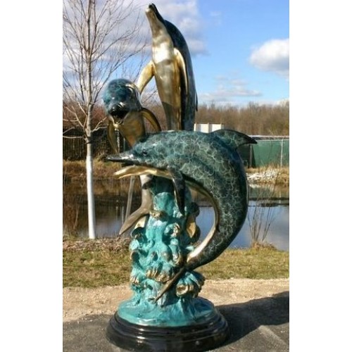 Delfíni představují skutečně nádherné a přátelské stvoření . Svou laskavou a vstřícnou povahou si získaly mnoha lidí po celém světě . Právě z toho důvodu jsou tak velmi navštěvované delfinária . Zde můžete vidět i skákající delfíni . Pohled na skákající delfíni skutečně pohladí oko i duši . Díky dnešní uspěchané době, není možné, abychom pravidelně navštěvovali delfinária . Malé delfinárium si však můžeme zajistit i koupí této bronzové sochy se speciální patinou, která zobrazuje tři skákající delfíni . Pohled na ni určitě i vám udělá obrovskou radost .