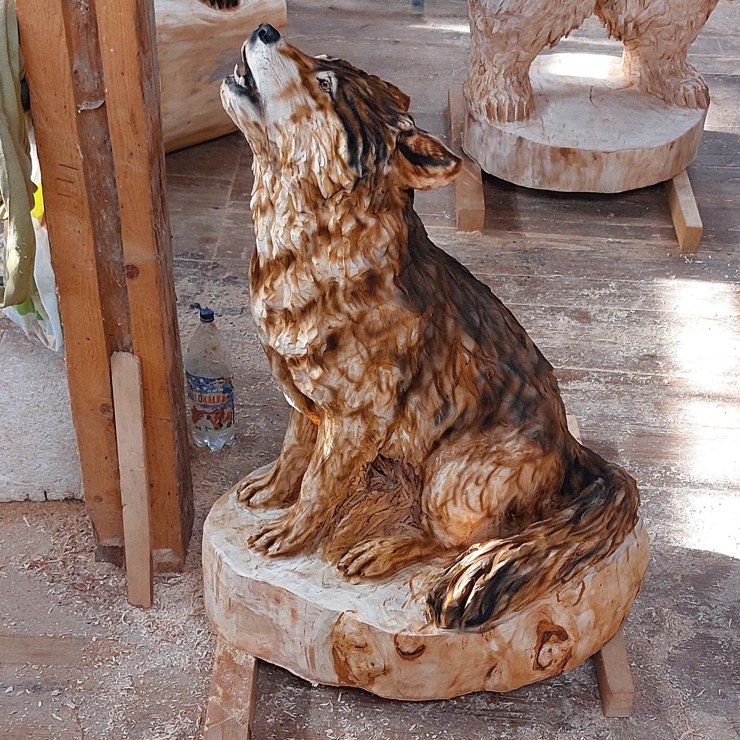 Ručně vyřezávaná socha – Vyjící vlk